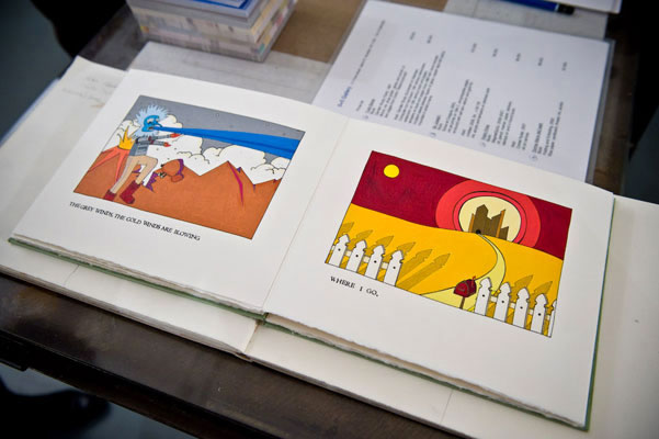 "the grey winds, the cold winds are blowing" and "where i go" ink and colored pencil on paper 9.5'' x 8''