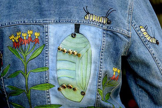 monarch jacket screen printing ink and buttons on a jean jacket women's medium