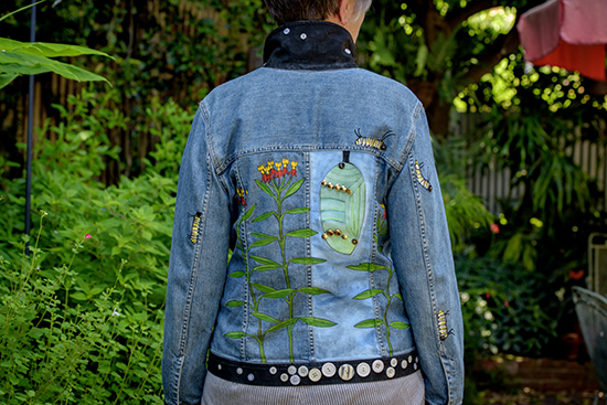 screen printing ink and buttons on a jean jacket