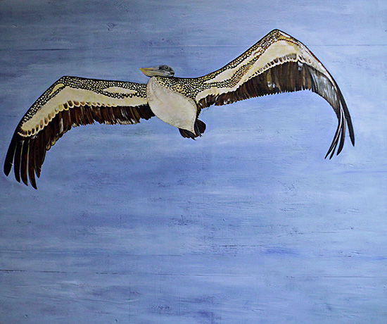 pelicans on pelicans #11 water oil on found wood 48" x 40"