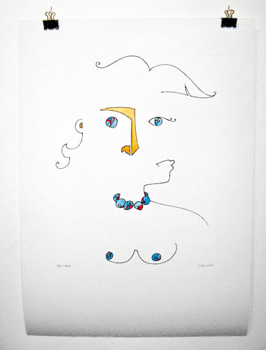 ink, colored pencil and watercolor on paper